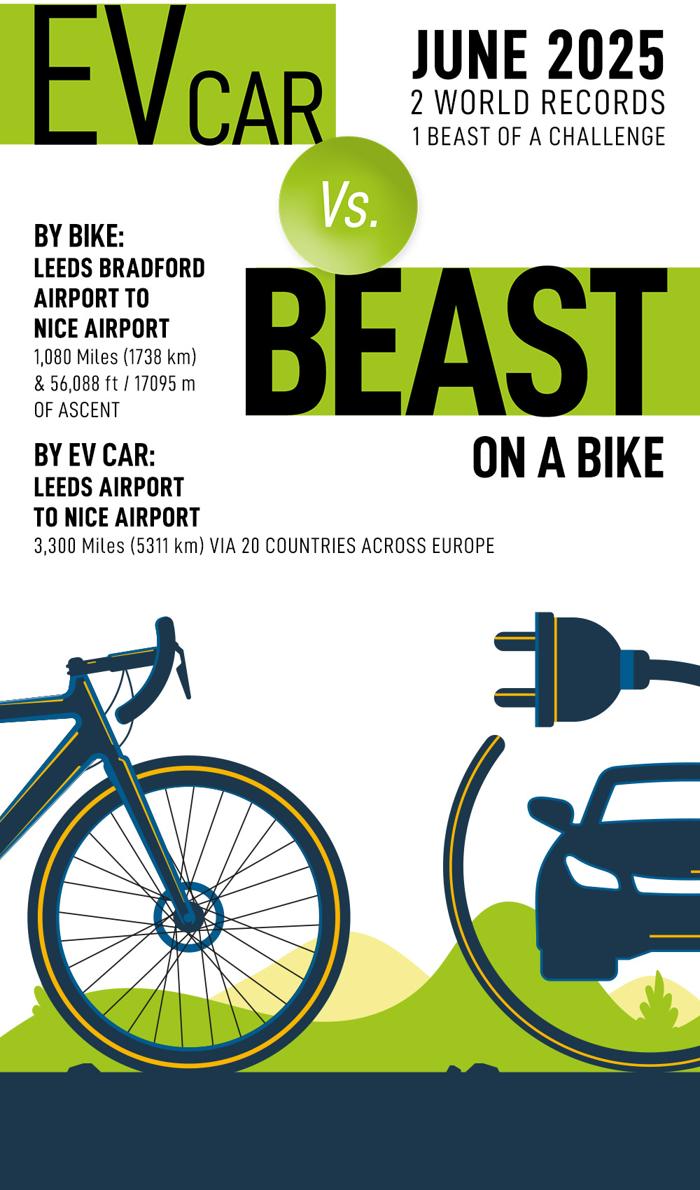 On 17 June 2025, as dawn breaks over Leeds Bradford Airport, two determined adventurers will set off on a race that blends human tenacity with cutting-edge technology. In one corner stands Martin Mansell, ready to pedal a gruelling 1,000 miles to the sun-drenched shores of Nice. On the other, Steve Dennis prepares to navigate an electric vehicle through a labyrinth of 20 countries and 3,300 miles of diverse European terrain.